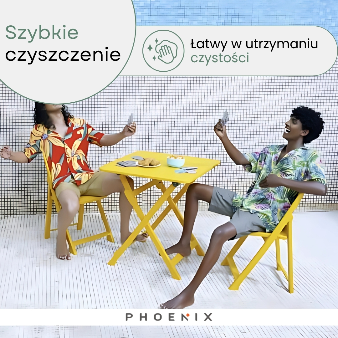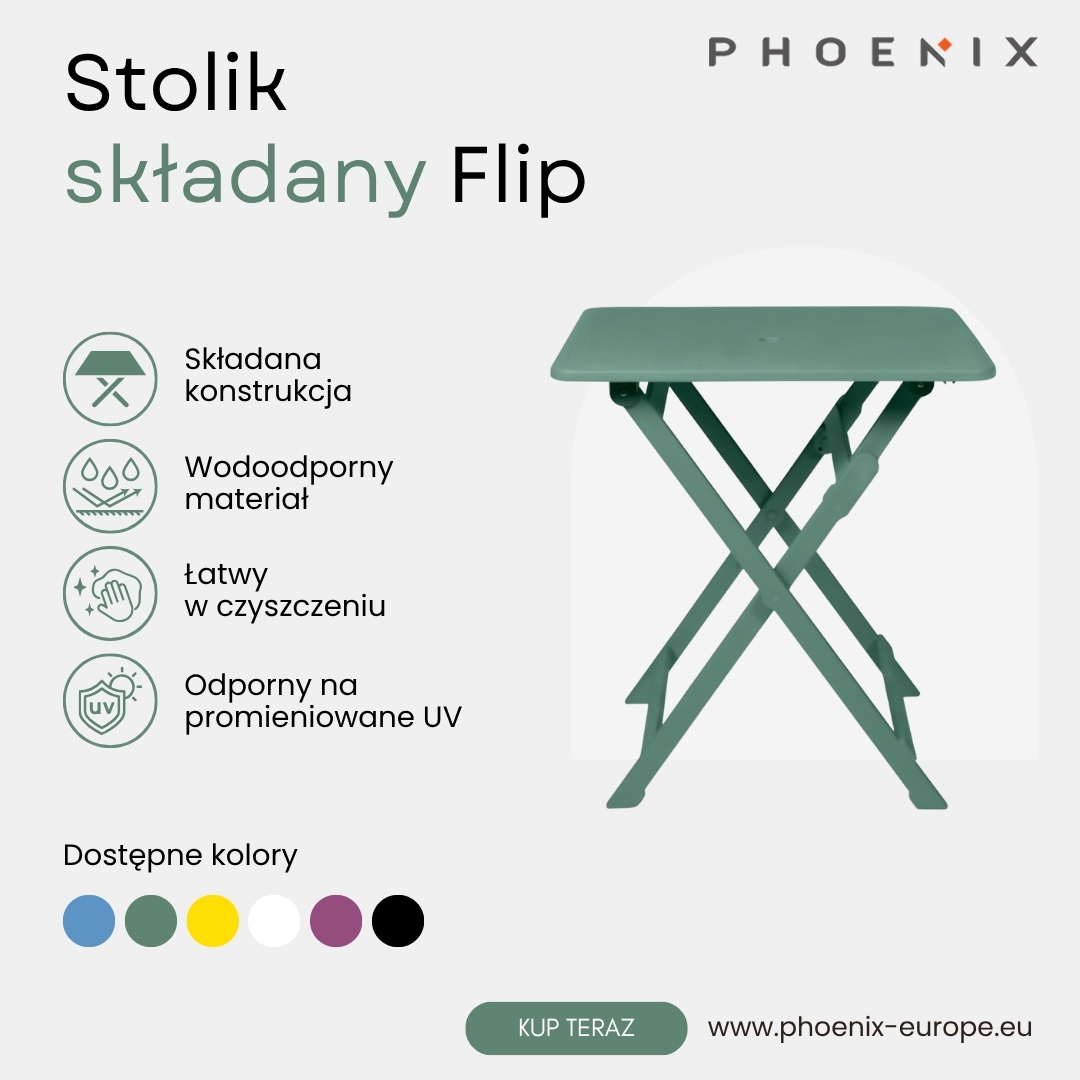 Stolik Flip to składany model stworzony z myślą o wygodzie i elastyczności użytkowania. Jego prosta, a jednocześnie nowoczesna forma doskonale sprawdza się w ogrodzie, na balkonie, tarasie czy podczas pikniku. Dzięki funkcji składania z łatwością go przechowasz lub przestawisz tam, gdzie jest akurat potrzebny.